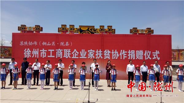 考察團一行先后深入隴縣綠能牧業(yè)4萬只奶山羊養(yǎng)殖場、陜西和氏乳業(yè)7萬噸羊乳粉智能生產(chǎn)線、隴縣關(guān)山草原游客接待中心、西北農(nóng)林科技大學(xué)隴縣優(yōu)質(zhì)核桃實驗站現(xiàn)場進行了實地考察。考察結(jié)束后,在隴縣社火廣場舉行了“蘇陜協(xié)作—徐州市工商聯(lián)企業(yè)家扶貧協(xié)作捐贈儀式”;春?毓杉瘓F現(xiàn)場為我縣貧困群眾捐贈三輪摩托車40輛,為全縣8個鎮(zhèn)19所小學(xué)學(xué)生捐贈書包、文具盒、小紅帽各4000套,受助單位及個人現(xiàn)場領(lǐng)取了捐贈物品。